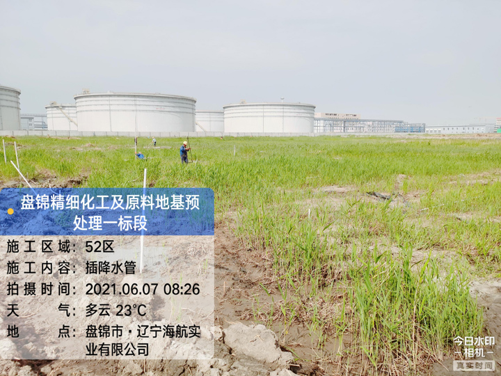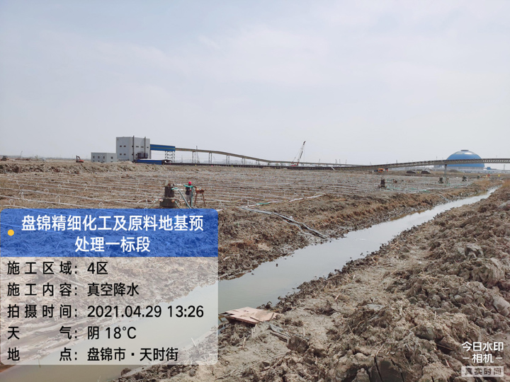 本項(xiàng)目為兵器工業(yè)集團(tuán)精細(xì)化工及原料工程項(xiàng)目廠區(qū)地基預(yù)處理施工 (一標(biāo)段),位于遼寧省盤(pán)錦市遼東灣新區(qū),場(chǎng)地行政區(qū)劃隸屬盤(pán)錦市大洼區(qū)榮興鎮(zhèn)。工程總地基處理面積552451㎡,共分為一區(qū)和二區(qū),一區(qū)面積71080.92㎡;二區(qū)面積481371㎡,擬采用強(qiáng)夯、真空排水、挖溝排水措施方式進(jìn)行處理。